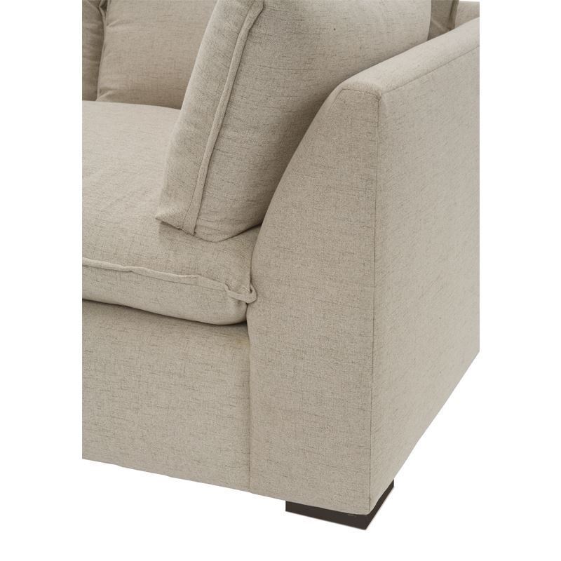 Our exclusive sectional combines versatility in seating with the ultimate in lounging capacity. The Calum Sectional consists of our five foot square double chaise that we’ve paired with a 70” one-arm sofa. Whether nestled into the over-sized chaise or comfortably seated on the sofa, this sectional offers you a full menu of sitting choices. The Calum comes relaxation-ready with feather down cushions and is upholstered in a sisal-colored performance fabric