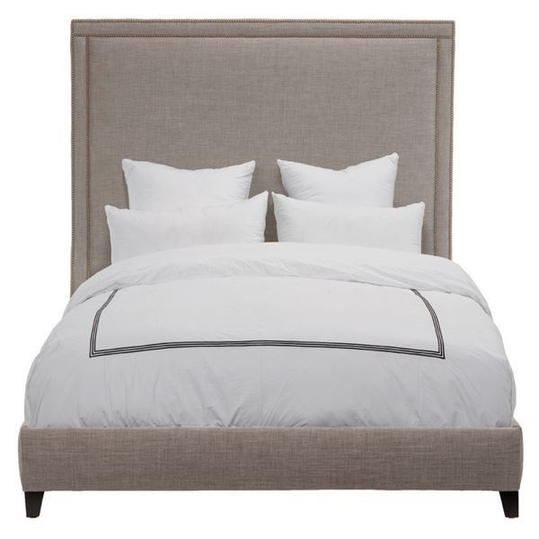 With an extra tall, square profile, the Elm Bed features a double border of decorative nails running around its stately headboard. Sheathed in an elegant milford dolphin upholstery, the Empire Bed transforms your bedroom into a space both noble and gracious.