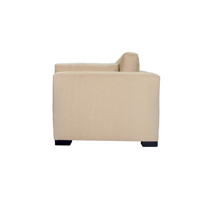 Aeron features a sloped rolled arm, top stitched boxed loose back pillows and two cushion seating.