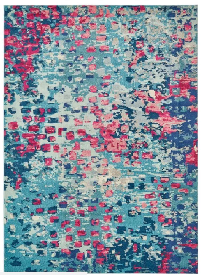 This Turkish rug is made of polypropylene. This rug is easy-to-clean, stain resistant, and does not shed. Colors found in this rug include: Blue, Beige, Gray, Light Blue, Puce, Red, Pink. The primary color is Blue.