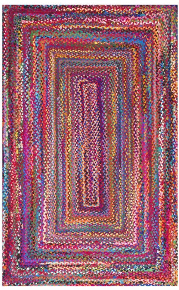 An effortless glance-grabber in any space, this alluring area rug is sure to enliven your abode. Roll it out between a pair of crisp white loveseats for a pop of contrast in the living room, then make it shine with flickering candle lanterns atop weathered wood nightstands around the ensemble. Made in India, this ravishing rug is sure to stand out in any space. It is handcrafted of 100% cotton for a soft touch, while a braided design and a rainbow of vibrant hues make it effortlessly eye-catching. Switching up your style in the master suite? Take a solid-hued sumptuous comforter from simple to stunning in seconds by complementing it with this ravishing rug on the floor below. Though this posh piece brims with bohemian beauty all on its own, you can lend a little extra breezy appeal by dotting the walls around with a collection of curated antique prints.