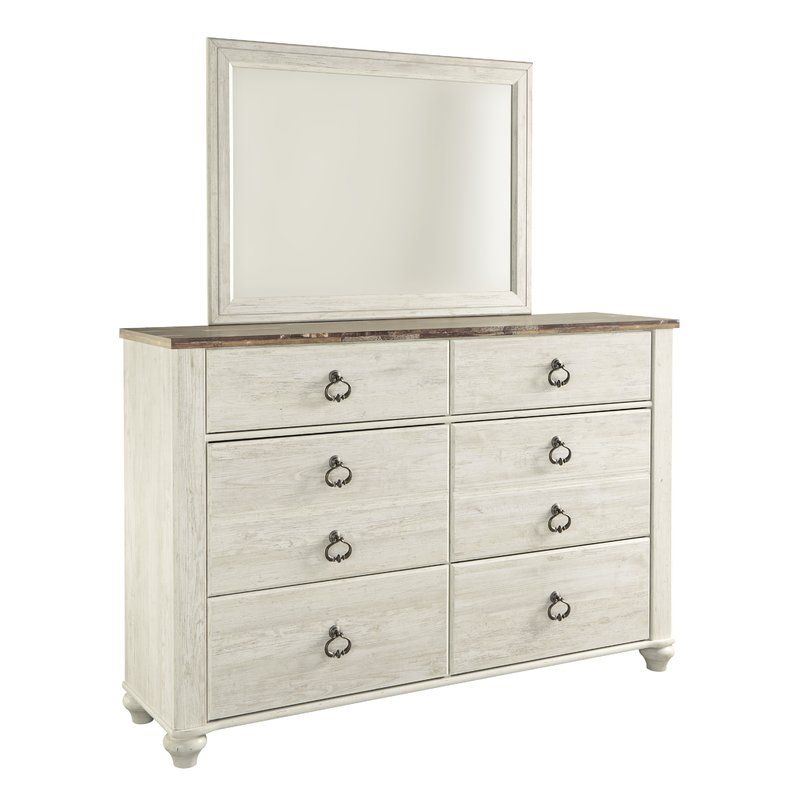 This Nathan 6-Drawer Dresser with Mirror has a weathered country style that is both casual and understated.