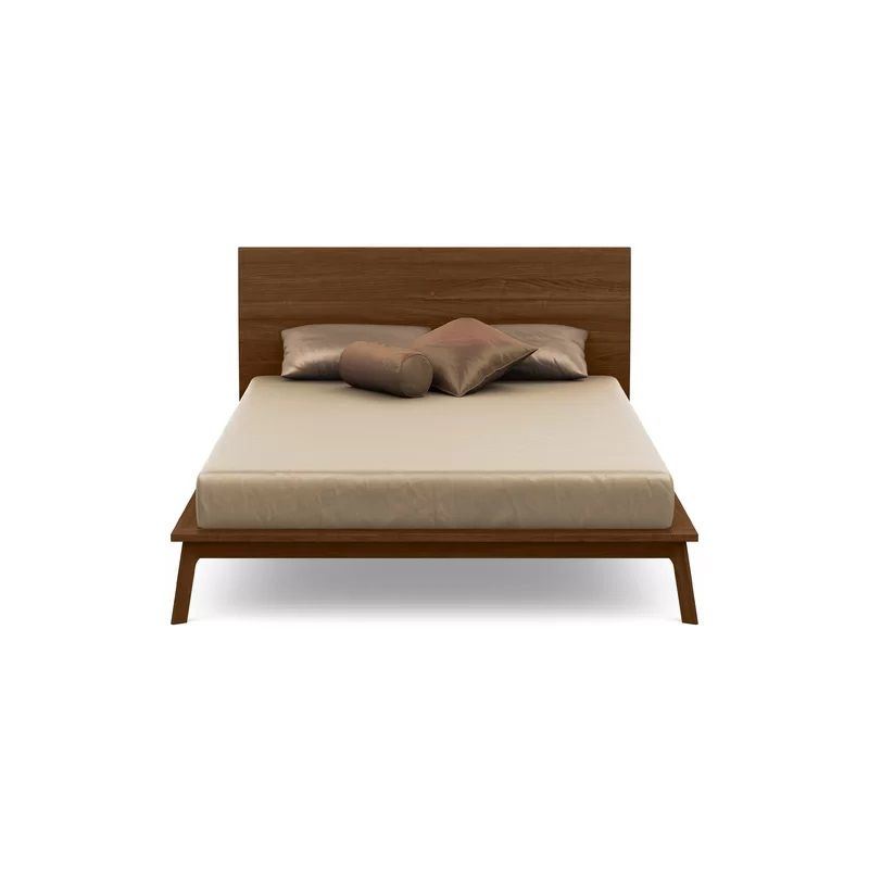 Enjoy this modified sleigh profile crafted from figured flat cut walnut veneers and finished in a deep brown.