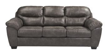 Aeron features a sloped rolled arm, top stitched boxed loose back pillows and two cushion seating.